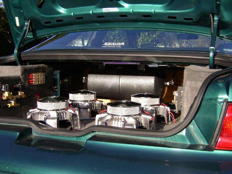 4 audiobahn aw1200x subs in custom fiberglass enclosure, 2 mtx 2300''''s and a 250x Jl audio mids and highs, Panasonic head unit