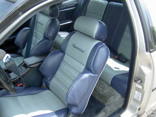 billet tilt knob/ford racing shoulder pads/corbeau and nrg racing seat belts/autometer gauges/blue and grey leather/piston door lock knobs