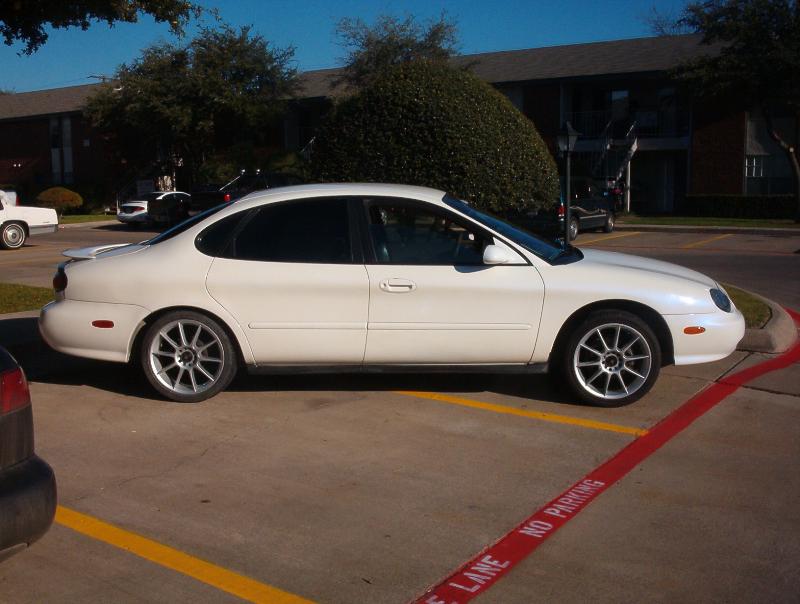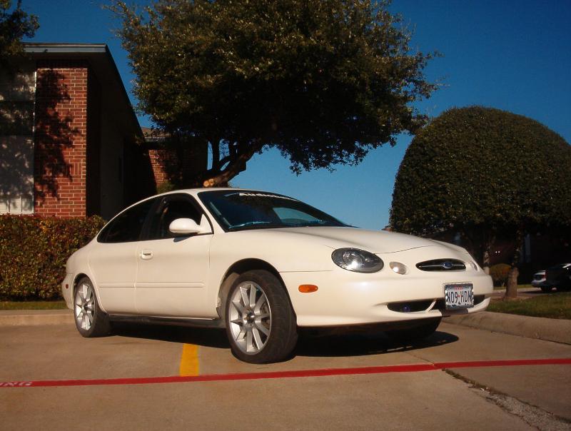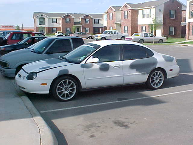 "SARTED INTERIOR 02/13/03" Full blown interion in tweed leather mix(it is all tan now). All gray tweed dash with black tweed inserts, and top half pillars will be black, driver pillar will have a dual 2" guage pod(one amp temp, other oil pressure), a silver ford symbol with neon blue tribal flames on head liner, flames will flow to back pillars and down on to the rear deck which will have 6 by 9 plus tweet pods. Lower half of car will be done in a dark gray tweed with black carpet. Seats will be gray leather with some type of inserts(undecided) in blue, yellow and black. Building custom center console to hold headunit, PS2, all my neon switching, air gauges, cup holders(never really see a custom console with cup holders), and whatever else I need in there. When I can park my car, I will start the biggest mod, Ford 302 out of a 92 or 93 mustang 5.0 GT Cobra, and converting my car to rear wheel drive, that will take some time and creativness, since I am doing this myself minus friends and family! Other than that, just regular upgrades to what I have already done!