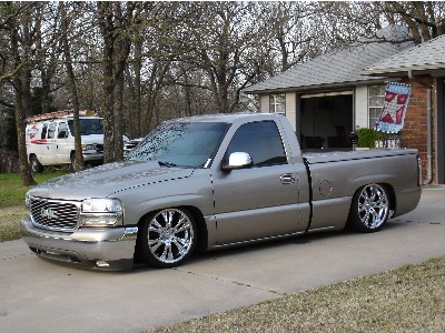 More Billet on the Interior as well as More Painted Pieces, More Billet under the Hood, New 20s up front and 22s out back, New Paint Job...Possibly Two Tone or Maybe Ghost Flames, New reworked Custom Bedliner, Reworked Leather/Suede Seats and Trim, A lot of Fiberglass work on the interior, Shaved Stake Pockets, Possibly even chopping the top or going topless