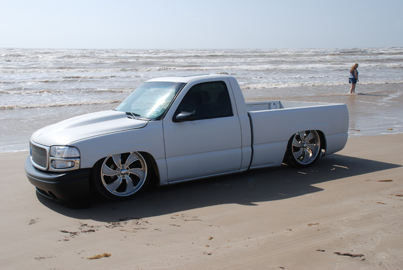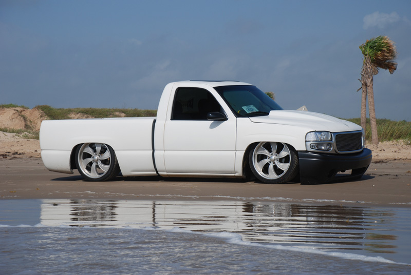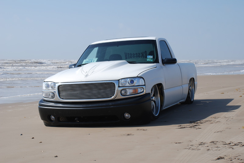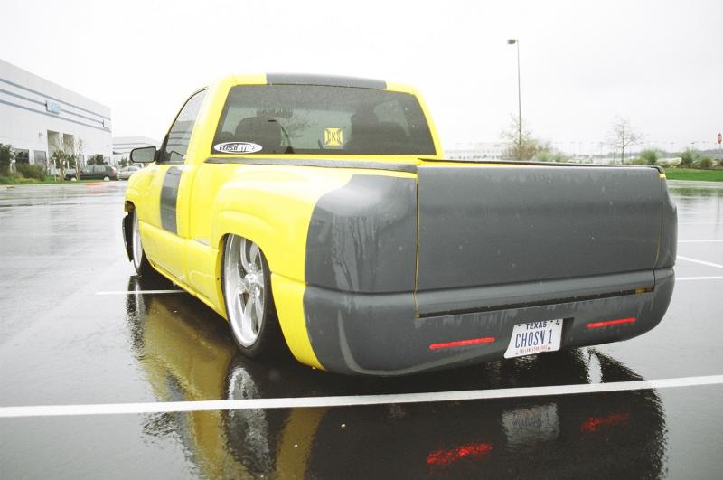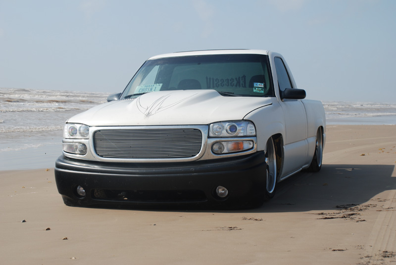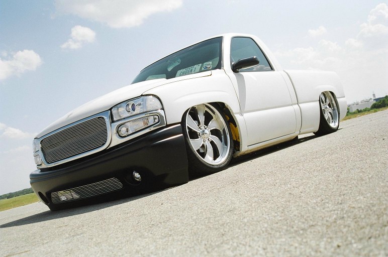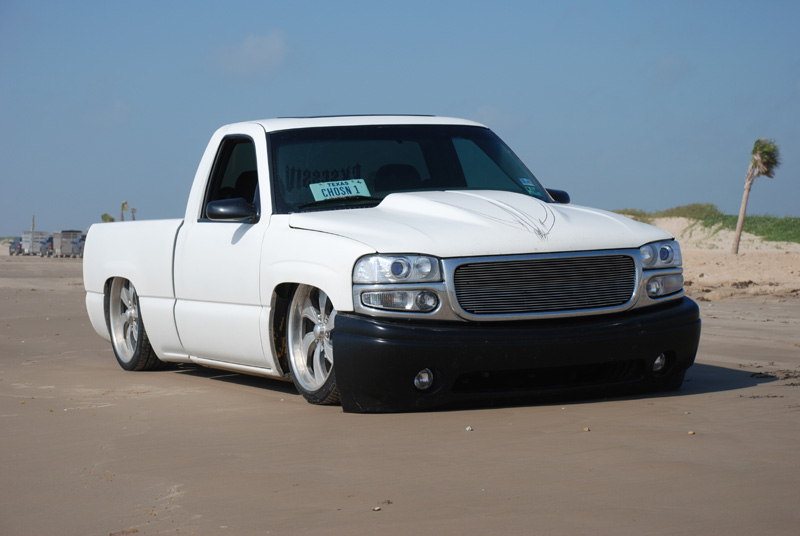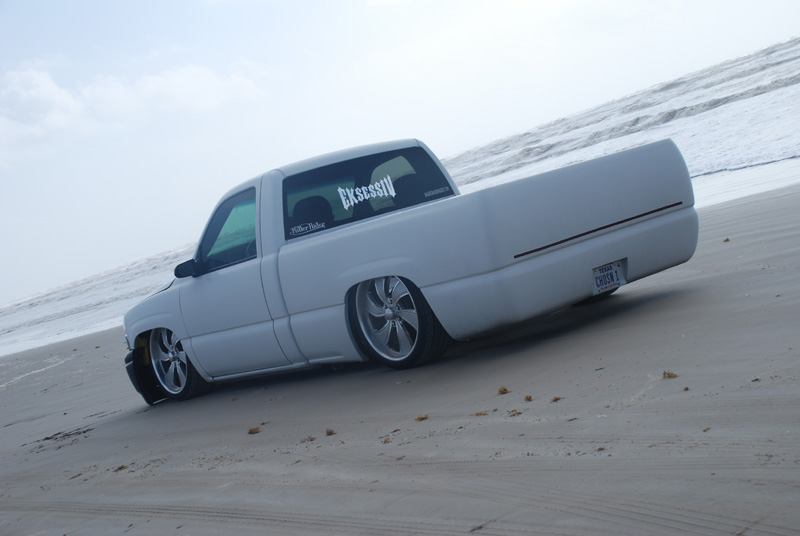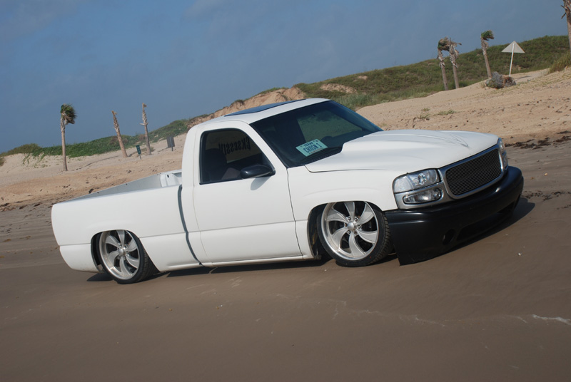 Switched over to a fleetside and shaved stake holes, gas door, taillights and full skin combo. 62" Hitech led, SS mirrors, Goodmark hood, Denali front and primered white. All work done by Killer Ridez