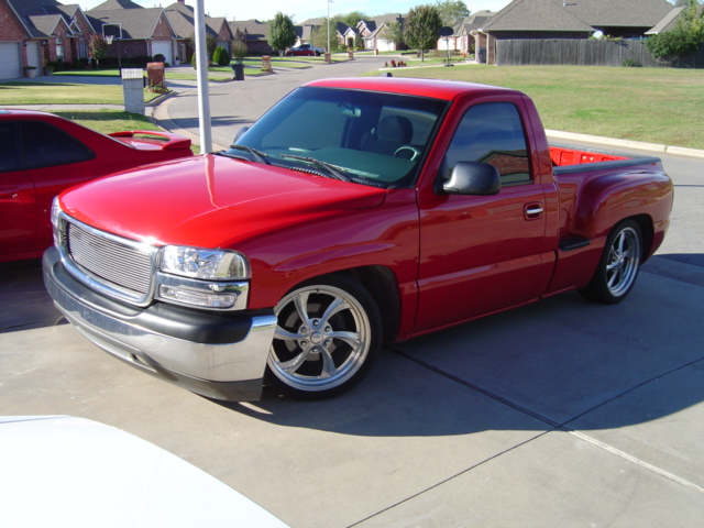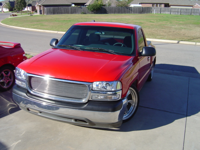 SOLD!! Stull billet grille, Escalade door handles, Candy Red tail lights, Cleared parking lamps, Cleared out Denali Projectors, and roll pan