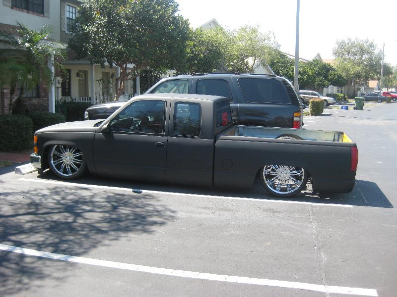 Bagged... triangulated 4-link cantilever setup, 2600s and shocks all the way around, drop spindles, 3/8 valves 1/2 inch lines and fittings,cut firewall, setup for 24/26 wheel combo...
