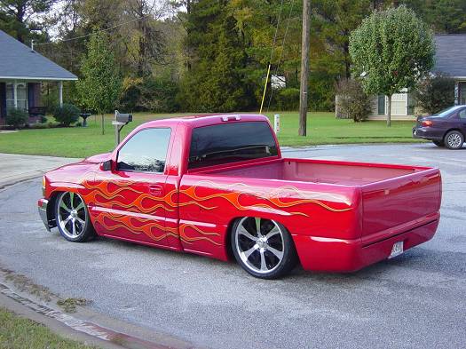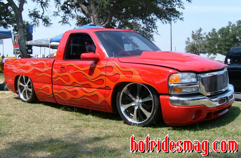 grant kustoms roll pan, shaved tails and gate, 06 bumper and grille,flames by kevin williams