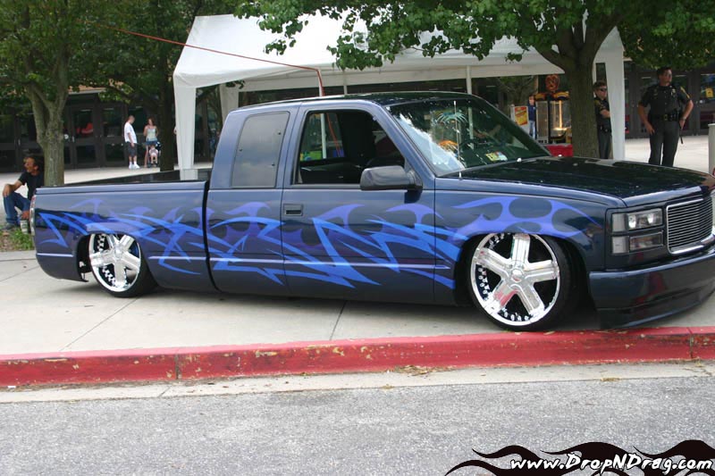 Shaved Tailgate, Rollpan, Custom Paint w/ graphics, blacked out headlights and signal lights