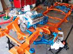 fully painted interior, white leather and orange suede on seats, headliner, & console, fiberglassed dash