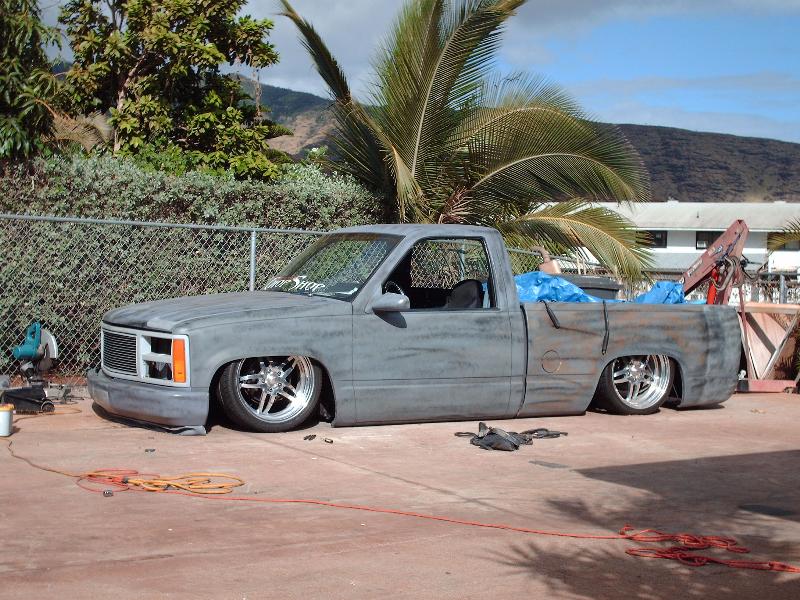 STOCK FLOOR BODY DROP,SHAVED DOOR HANDLES,TAILGATE HANDLE, TAIL LIGHTS, THIRD BRAKE LIGHT, STAKE HOLES, MOLDED ROLLPAN.PRIMER FOR NOW. ALL BACK YARD