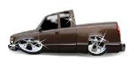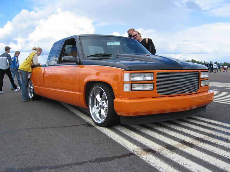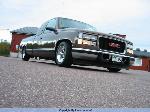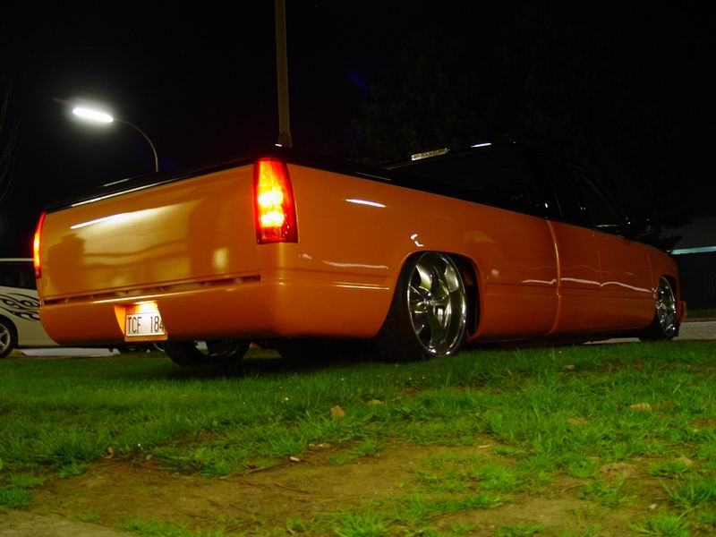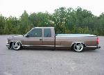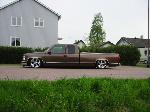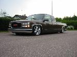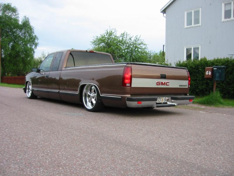 Bagged in all 4 corners. Art coolride kit with control arms up front and ART parallell 4-link with HAL shocks in the back. 4 way setup. 1/2 inch lines in entire setup with ART Big Red valves. Engine driven York comp. A 6 gallon tank with 8 3/8 ports under the bed and a 24 gallon tank with 3 1/2 inch ports in the bed. Custom made c-notch. Lays frame.