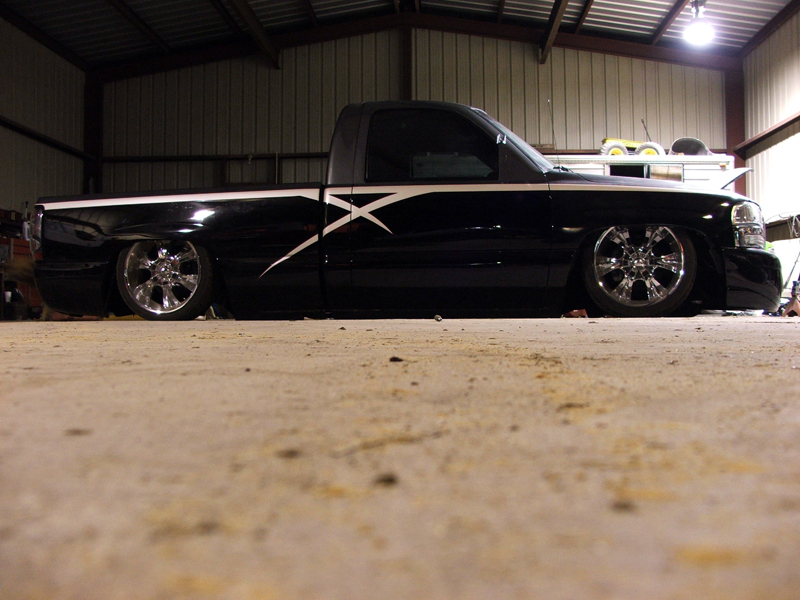 shaved doors, shaved gate,shaved molding, shaved mirrors, chrome chopper mirrors, headlights, taillights, grill, Xenon bumper and rollpan, 3 1/2 inch Body Drop!, Paint: My gun, my idea, lots of good paint and time.. lol