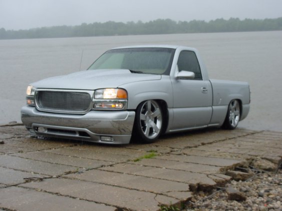 volkswagon jetta silver, cowl hood, escalade handles, molded in roll pan , shaved tailgate handle, billet insert grill, SS mirrors