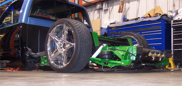 Kp Components 6 link and Watts link, ART control arms Slam Specialties bags, 8-1/2 inch valves you know the rest...