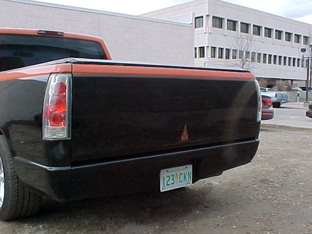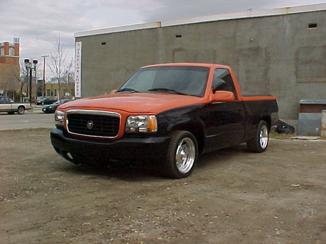 all emblems and mldgs shaved, rear roll pan, Escalade front end, smooth tailgate, filled stake pockets