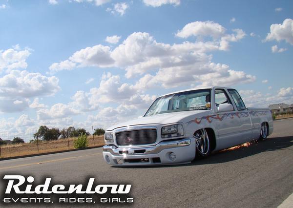 White with a house of color orange and silver design (done by settin trends), 99 Cadi Front-end, with a 06 GMC Bumper, painted bumper, Shaved Tailgate Rollpan handles antennea, Billet Grill, Clear Parking Lights Corners, Clear Windows All Around, Gaylord Tonneau