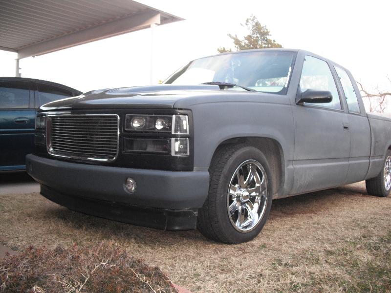 dark gray primer,shaved tail lights,led bar, shaved roll pan, cowl hood, billet grill,black halo head lights,shaved 3rd break light