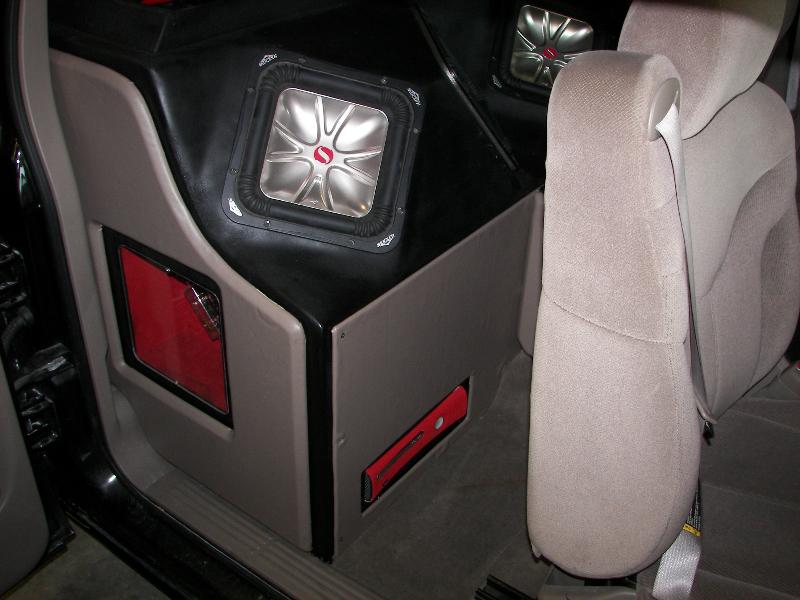 Kenwood DVD/CD, Kicker highs and mids, Kicker amps,8" Kenwood monitor in the console, 4 10" Kicker solo-baric subs, miles of wire and tons of Stinger Parts