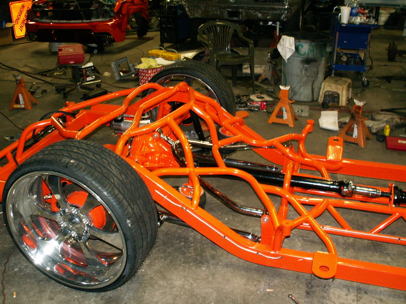 firewall back mandrel bent chassis, custom tubing, powdercoated, custom tri link by Draggers Inc in Fresno