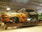 custom graphics by Kool Hand Luke, fully shaved, avalanche front clip all done at Jay's Auto Body in Fowler, CA
