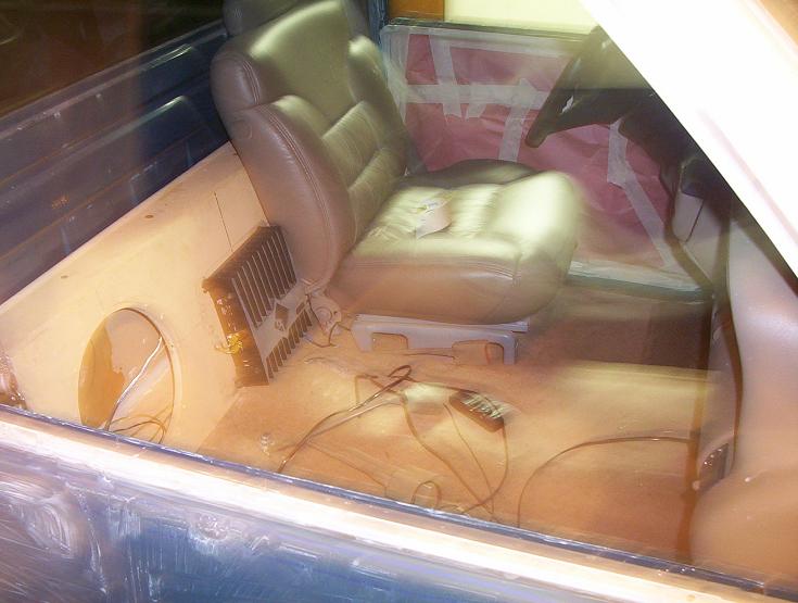 Pioneer Premier head unit, 2 memphis power reference 12's pushed a rockford fosgate power BD 1000, crossfire 6 1/5" componet sets pushed by a rockford fosgate 250, 5" screen molded in passenger airbag position ran to a PS2 in custom center console, 2 batterys under the hood powers all!