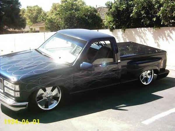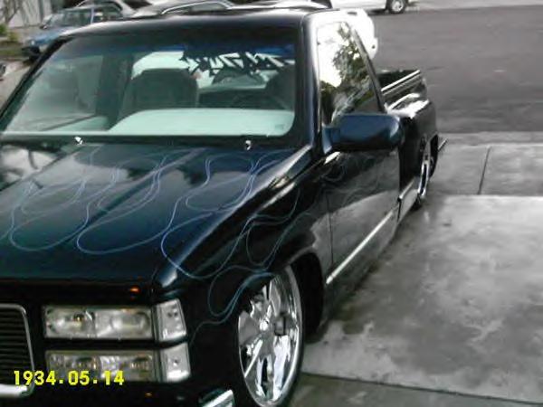 custome made blue with a white pearl top, diamond clear corners and parking lamps, angel headlamps with icy blue bulbs, billet grill, billet antenna, roll pan, shaved doors, third brake light and tailgate handle. three 15.5 inch led's in the rear...check...the way i did it has never been done....yessss