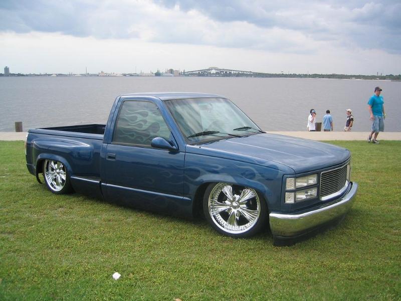 New paint job w/pearl flames, step shaver kit, shaved tailgate, third brake light, gas door, billet grill, euro tails, flame window tint, TRAIN HORN, and a bunch of other little things