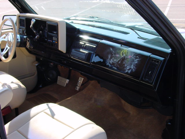 painted interior panels and dash; ultraleather seats, doorpanels, and headliner; billet specialties steering wheel and some other billet crap