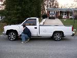 stock white and primer paint job, shaved third tail light and steak pockets, custom hoe emblems made by eric tate(dragrzeducation)
