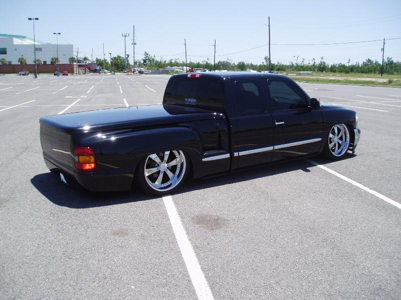 shaved tailgate handle, rollpan, billet grille, custom air dam, flow masters, bed cover, clear corner lenses, smooth wiper cowl, and rear escalade door handles