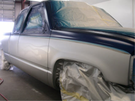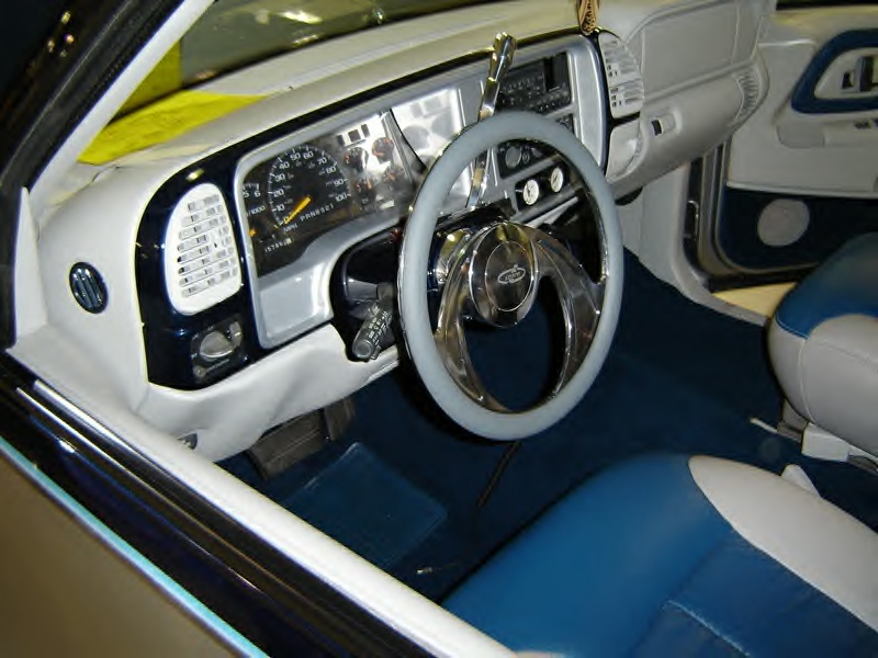 pulled all interior pieces and sprayed them dove gray. some pieces were sprayed indigo blue and silver to match new paint jof