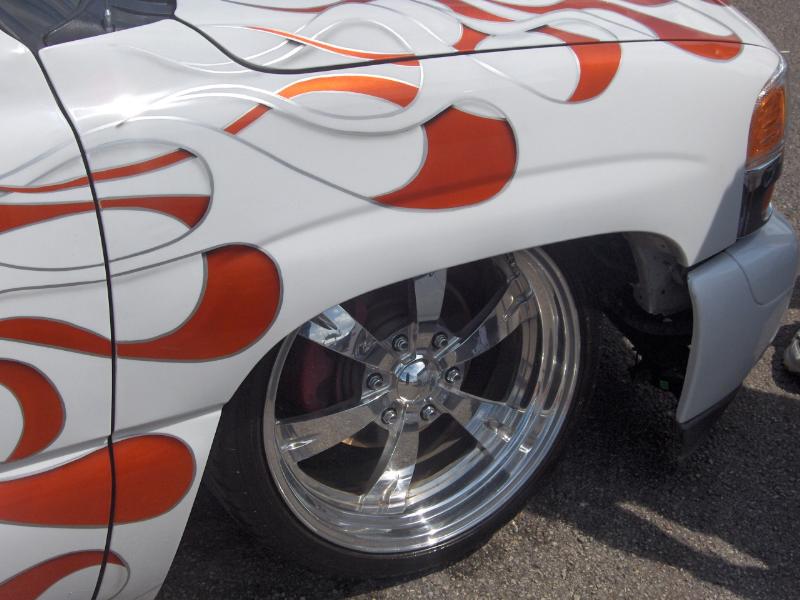 riight now it is re-tore down....just finished the '98 cadillac deville tail lights.... bout to start settin up for 24's! Future paint includes: throwin out the flames...2 tone (involving a badass gun-metal gray)! Should be done by mid November!