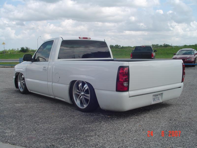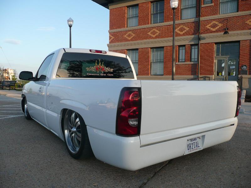 billet grille, painted grille shell, painted handles/mirrors, shaved tailgate, rollpan.