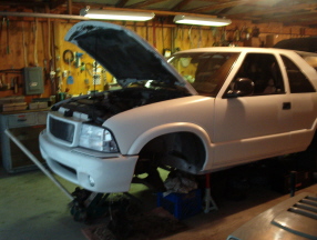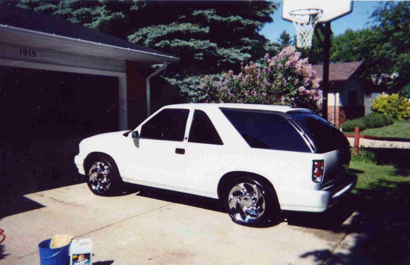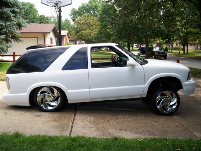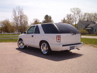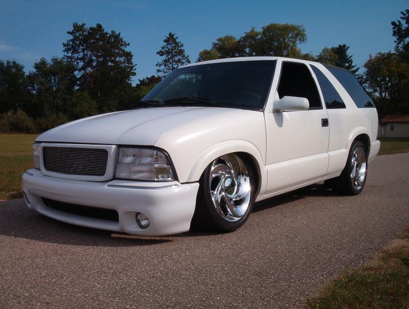 shaved handles, antenna, roof rack, tailgate, relocated 3rd brake light. '98+ headlights, billet grill, Envoy bumper, Cal-Vu Mirrors, 37.5" x 68" ragtop