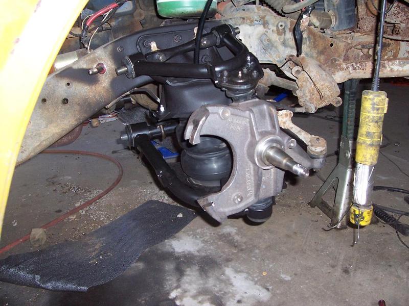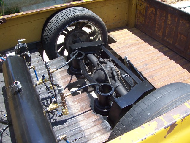 Porterbuilt DM, Air ride arms, spindles, mustng rack and pinion , unisteer adaption , 8 asco valves , 2 RE-7, 2RE-8 , 12 gallon tank , oasis compressor, Dakota DigitaGauges, two part drive shaft, and rear shocks