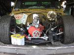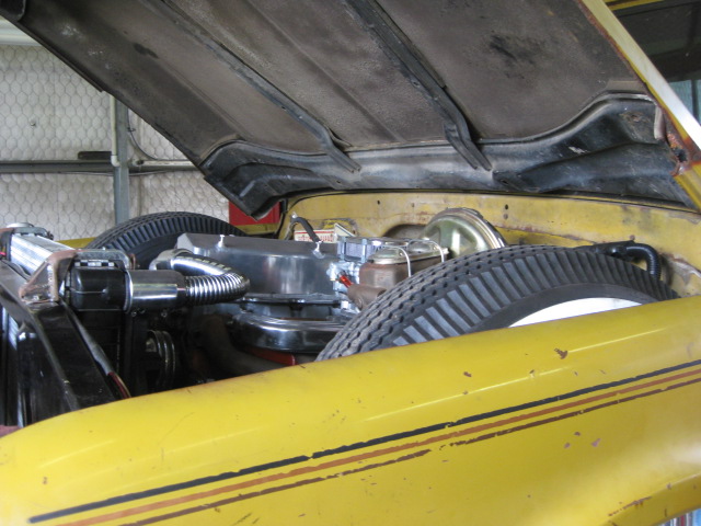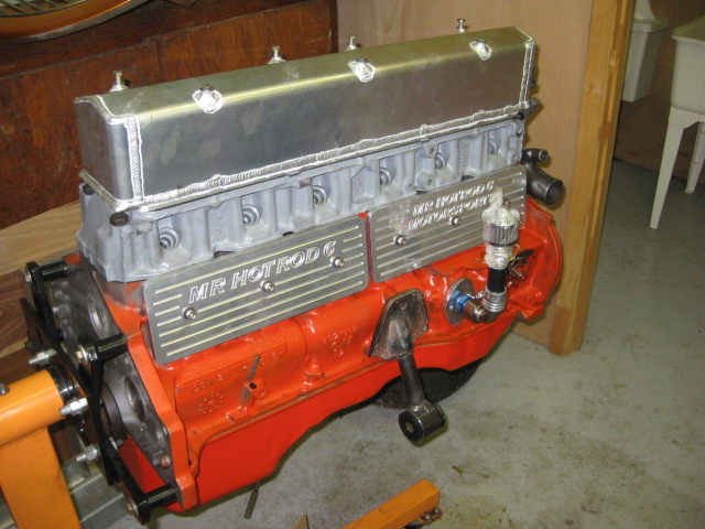 250 straight 6 bored 60 over, 208 duration 518 cam, 1.940 intake and 1.600 exhaust with intake lumps installed, bolt in rocker arm studs, 1.75 comp cam rocker arms, header , intake , WEBER Carb , 10 to 1 compression, billet valve cover ,side sheilds , and a chrome alternator. All brakets have been powdercoated. Has a turbo 400 tranny.
