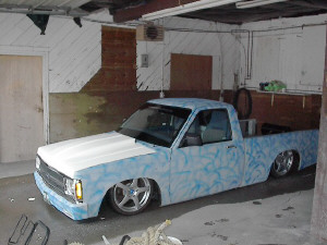 primered,calcombo,frenched front plate,shaved bumper bolts,3.5"body drop,shaved antenna, Shaved door handles.