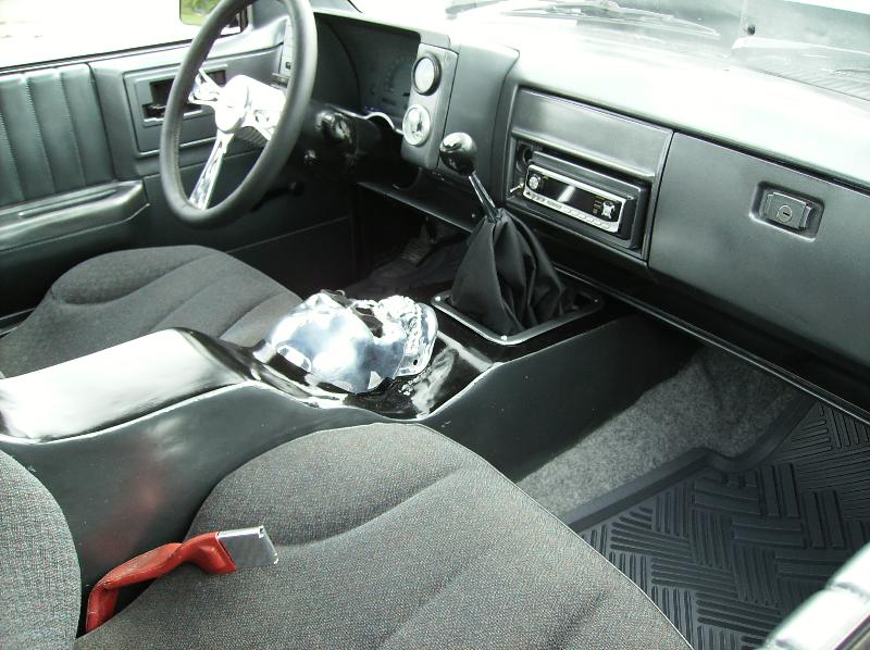 Smoothed and painted dash, Grant wheel, custom center console, bucket seats