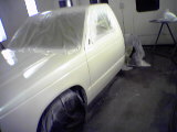 powder white with moss green pearl chromabase w chromapremier clearcoat. lots of shaved pieces...all by me
