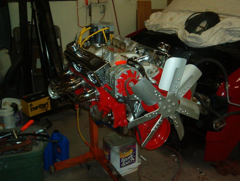 350 bored .40 over, 400 heads milled 20 thousanth and machined for 202 stianless valves,Edelbrock performer cam,lifters,intake, and carb. Hooker comp headers and a lot of chrome you wont even hardly see. 700R4, flowmasters