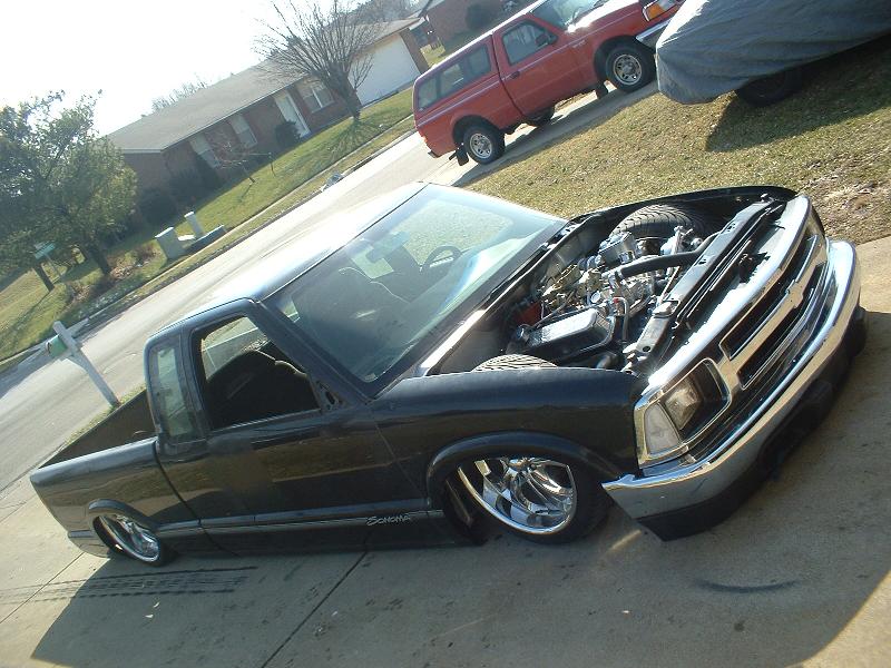 350 with lots of goodies that make me 450 hp all motor, Jaz Fuel cell, Howe 3" Aluminum Radiator, 2.5" Exhaust with 40 Series flowmaster and turndowns just past the cab, hedman elite headers