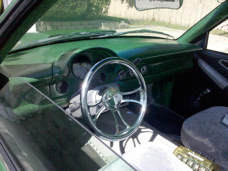 '56 Ford Fairlane Dash, green suede, silver carpet and seats