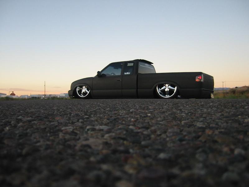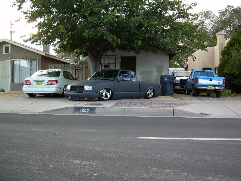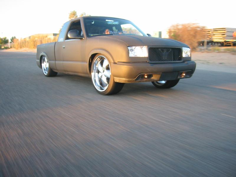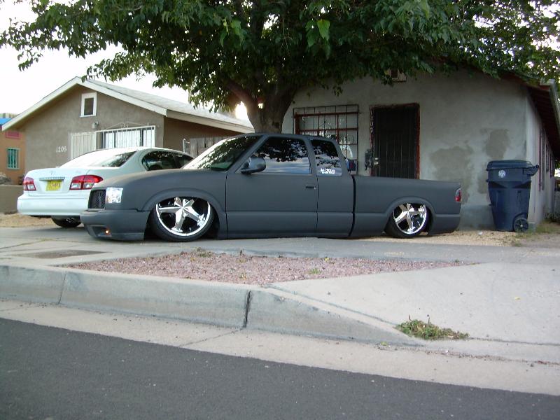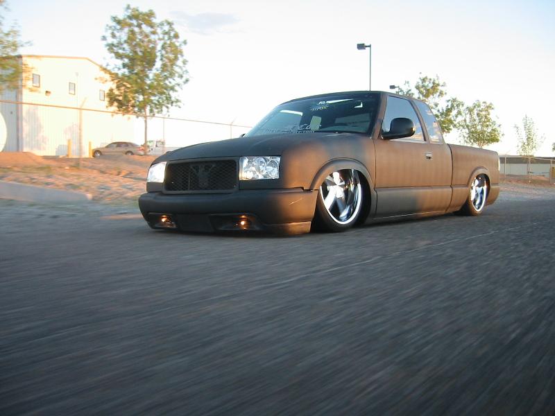 SHAVEING EVERYTHING BUT DOOR HANDLES AND TAILLIGHTS FOR NOW, 37"X40" SLIDING RAG,EXCURSION PROJECTOR HEADLIGHT CONVERSION, CUSTOM WATER JETED GRILL, ENVOY FRONT BUMPER, SPORT MIRRORS, SHEET METALED BED, FUEL CELL, AND MOLDED ROLL PAN