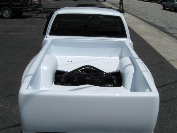 custom hood;shaved handels,antenna,third brake light,tailights,gas door,mirrors;all metal bed front steps rear steps smoothed interior of bed,full tailgate skin w/2 leds,custom aluminum 20 gallon fuel cell