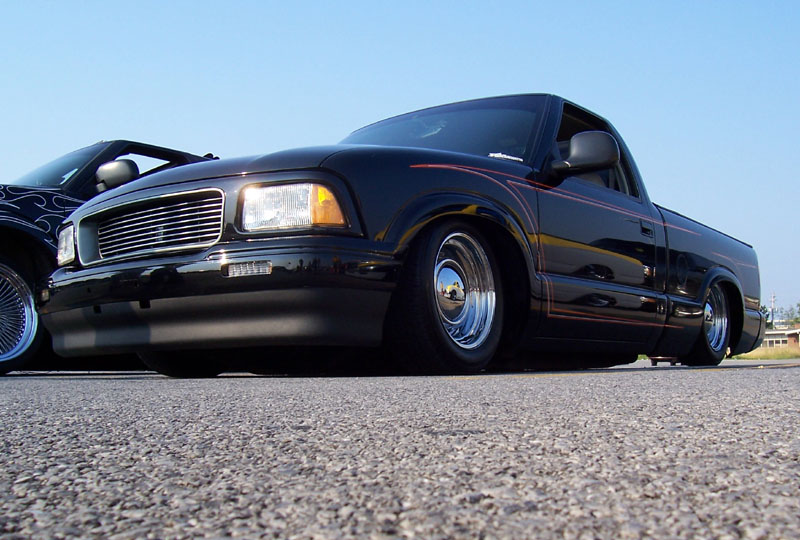 DJM 2" drop spindles, AirLift 2500lb bags, '94 Toyota 2WD shocks out back, Thorbecke 3-link...ALL BAG WORK DONE BY JASON MORGAN...Thanks a ton bro!