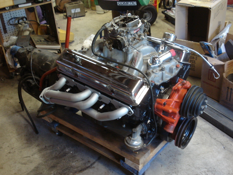 305, cammed, edelbrock 750cfm carb,edelbrock performer rpm intake, heddman headers, th350 tranny, b&m shift kit,