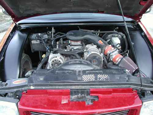 v6 vortec with cut back firewall for the smoothies on a body drop. Smoothed firewall.