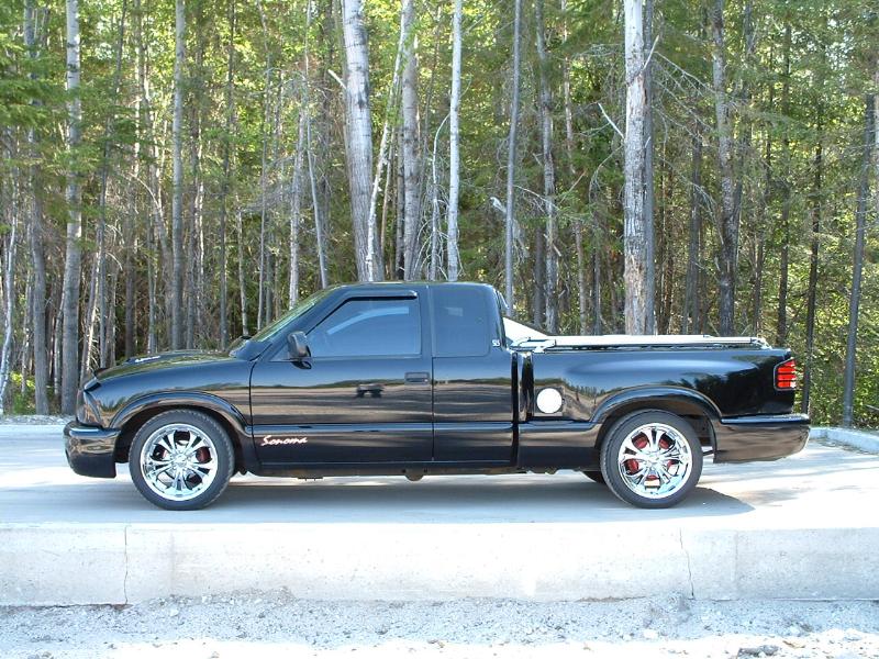 tint my windows 35%, a hoodshields, headlights cover, side windows deflectors, back sunflector, front Envoy Bumper with frog lamp, the TRENZ billet grills and hoodscoop, Billet fuel doors and remove factory stickers,I shave GMC SONOMA on the back