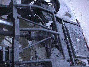 Custom lower control arms (lays on 20's in front), FORWARD 4link, bag over axle