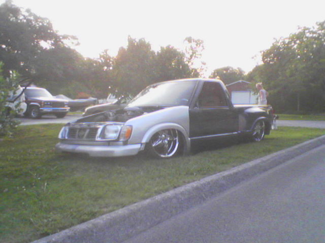 nissan frontier front-end. stepshaver. bodied 3 1/2 inches. aint got done with body work yet. this picture is old but it will do for right now ive got to take new pictures but boneyard customs is redoing some work right now on it so i will have some new pics up sometime soon. sorry bout the delay.