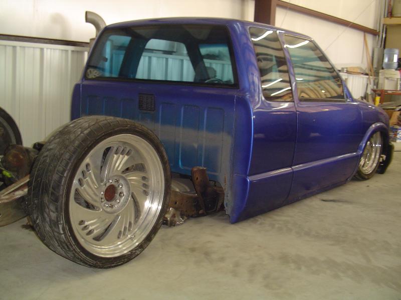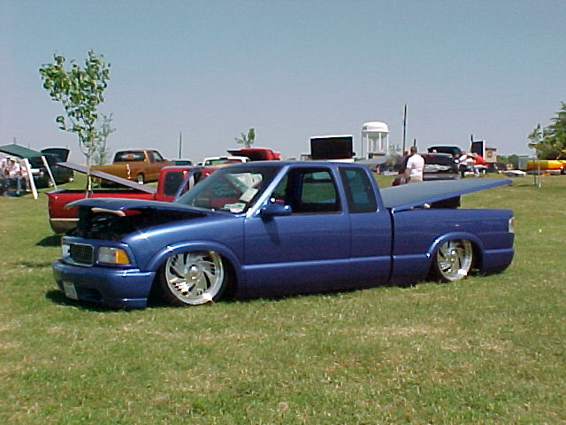 SHAVED ITEMS INCLUDE: DOOR HANDLES, WIPER SQUIRTERS,THIRD BRAKE LIGHT, TAILGATE HANDLE, ROOF SEAMS, ANTENNA, GAS FILLER DOOR, WELDED IN SIR MIKE'S ROLL PAN. 98-03 FRONT END CONVERSION W/ ENVOY FRONT BUMPER, ELECTRON BLUE PEARL PAINT.