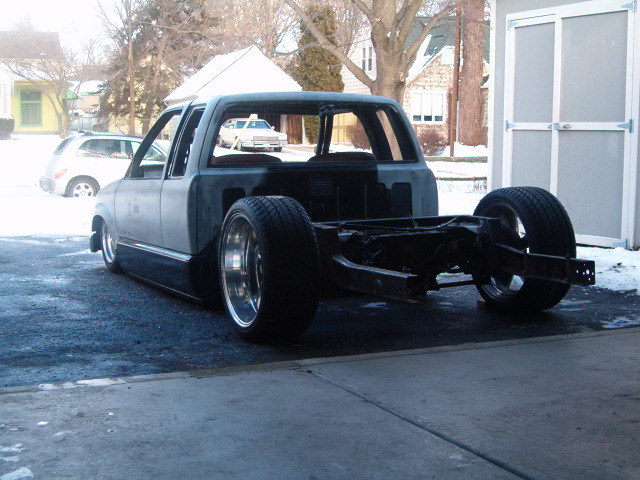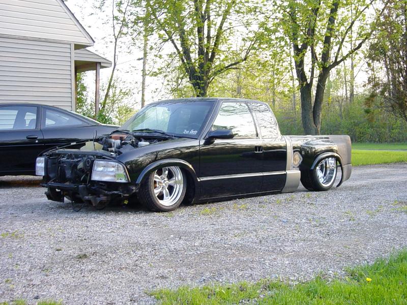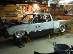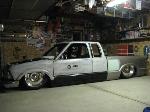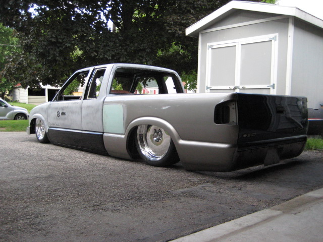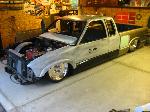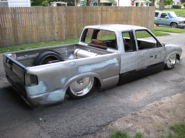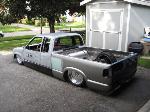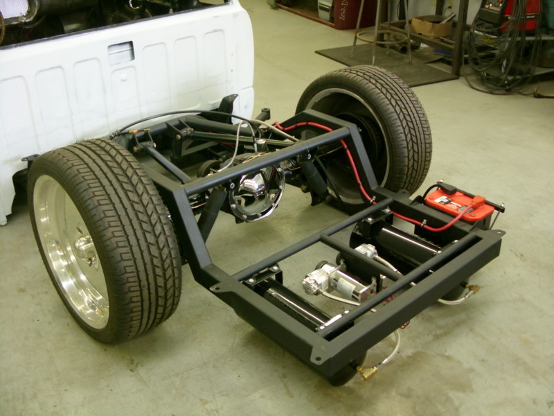 back halved w/ 3x2 and 1 1/2" tubing, 4-link w/bags on lower bars, 13" of lift, Slam Specialties bags, ART control arms, MIC manual valves, 2" spindles, Shocks (what kind?)