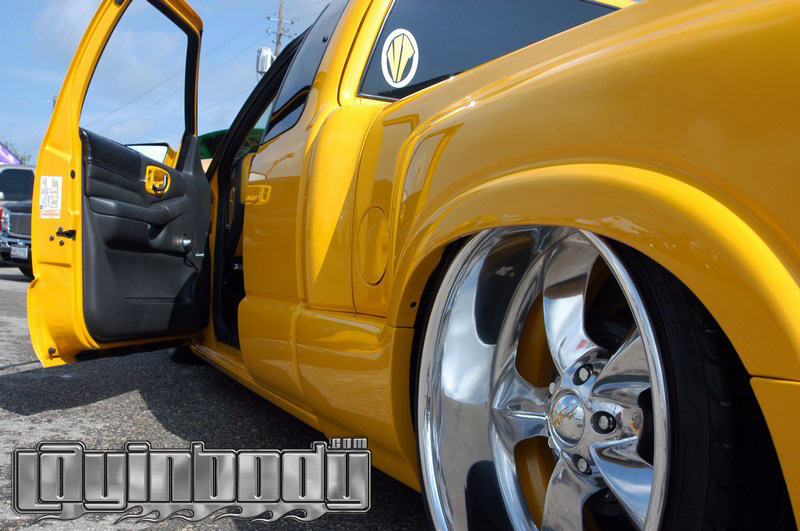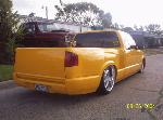 shaved brake light,tailgate handle,antena,hood squirters,and cut 3" off rear steps with a roll pan,billet grill,candy taillights,trenz billet license plate w/no bolt holes,trenz billet wiper covers